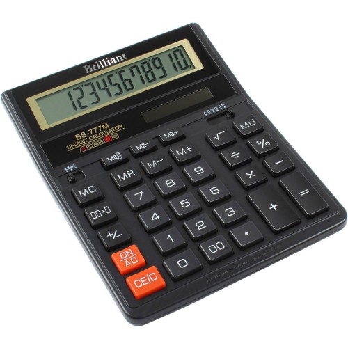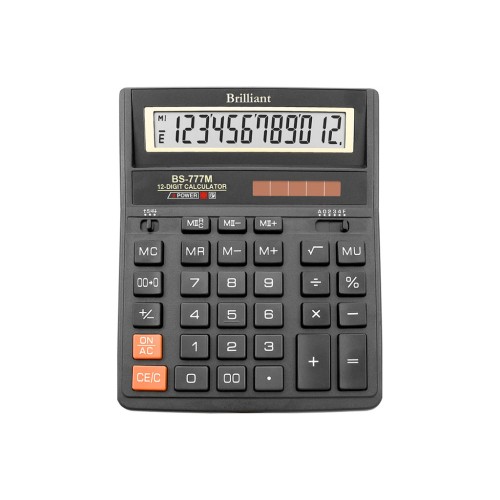 Brilliant BS-777M - 12-розрядний зручний професійний калькулятор. Добре підійде для роботи з грошовими сумами в бухгалтерії, касах, і тд. Має два джерела живлення. Калькулятор допоможе легко зробити різноманітні підрахунки, обчислити відсотки, підрахувати підсумкову суму.