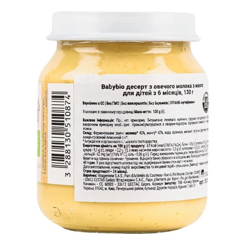 Органічне молочне пюре Babybio з овечого молока з манго відмінно підходить для розширення раціону та розвитку смакових уподобань дитини.