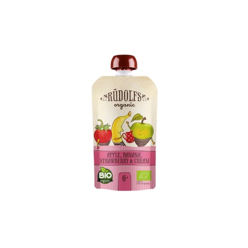 Смузі яблуко-банан-полуниця з вершками органічне фруктове пюре для дітей з 6 місяців Rudolfs (Рудолфс)