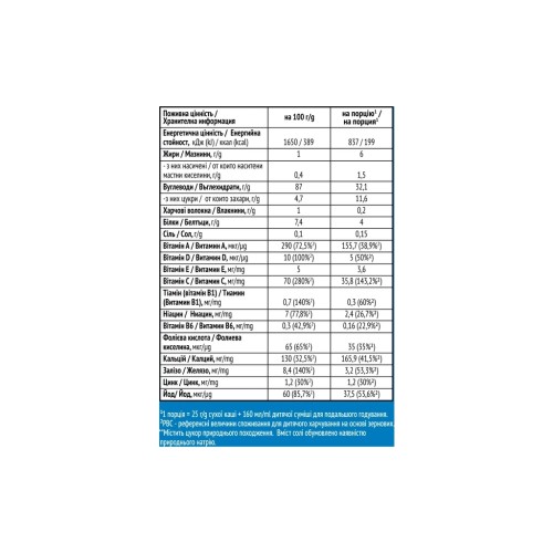 Проконсультуйтесь з лікарем-педіатром перед введенням в раціон дитини цієї каші. Попередження: безумовна перевага належить грудному вигодовуванню.