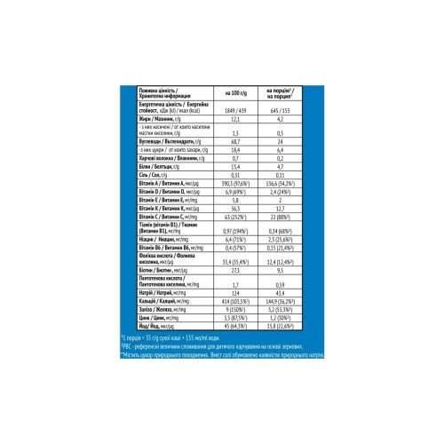 Проконсультуйтесь з лікарем-педіатром перед введенням в раціон дитини цієї каші. Попередження: безумовна перевага належить грудному вигодовуванню.