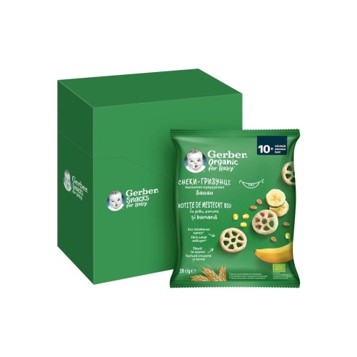 Пшенично-кукурудзяні снеки-гризунці Gerber з бананами для дітей із 10 місяців - це:
