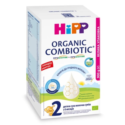 HiPP Organic Combiotic 2органічна суміш для дітей від 6 місяців. Це більш ситне харчування, яке підходить для періоду активного розвитку та початку прикорму.