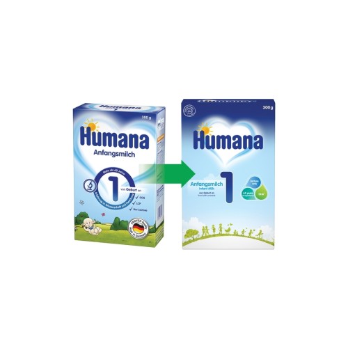 Суха молочна суміш Humana (Хумана) 1 c пребіотиками - суха високо адаптована початкова молочна суміш з пребіотиками галактоолігосахаридами (ГОС), поліненасиченими жирними кислотами LC PUFA і нуклеотидами, для доношених здорових дітей з народження до 6 місяців. Розроблено на основі наукових досягнень, клінічних досліджень і відповідно до вимог законодавства ЄС 2020!