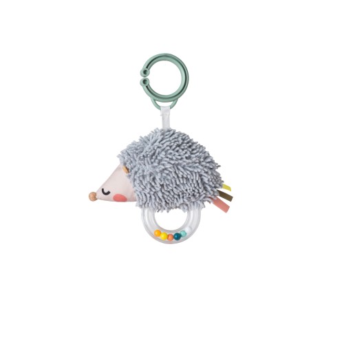 • А ще на брязкальці розташувався м'який пухнастий плюшевий їжачок.