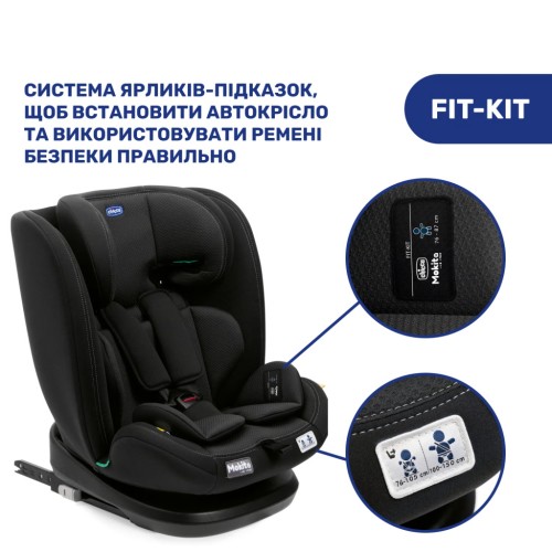 • Fit-Kit – зручна система кольорових ярликів-підказок допоможе швидко та правильно встановити автокрісло.