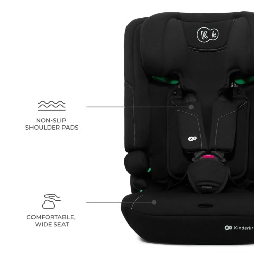 I-COMFY має 10-рівневе регулювання нахилу спинки, що дозволяє краще підлаштувати крісло до нахилу сидіння автомобіля. Широке й комфортне сидіння оснащене 5-точковими ременями з м’якими накладками та антиковзним шаром на плечових ременях. Починаючи з 140 см зросту, автокрісло можна використовувати як бустер.