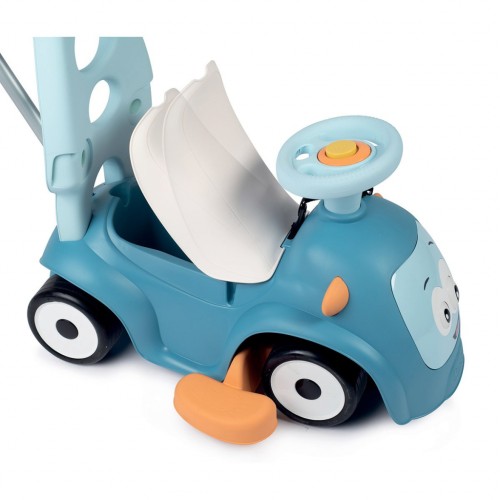 Вона створена спеціально для найменших дітей. З 6 місяців машинка на батьківському керуванні з максимальним захистом: захисним бампером, зручним сидіння з високою спинкою і триточковим ременем безпеки, підставками для ніг і батьківською ручкою, регульованою за висотою. Нудьгувати малюкові під час прогулянки не дадуть кермо з трьома різними сигналами та рухомі очі, що прокручуються і змінюють емоції. Завдяки зручному багажнику під сидінням, дитина з легкістю візьме із собою на прогулянку улюблену іграшку. Коли малюк трохи підріс, віком приблизно 10 місяців, він може робити свої перші кроки, тримаючись за спинку та штовхаючи машинку вперед. З 12 місяців зніміть усі допоміжні засоби безпеки та дозвольте дитині самостійно керувати. Машинка виготовлена з високоякісного пластику та має м'які, безшумні колеса, які не залишають слідів на поверхні.
