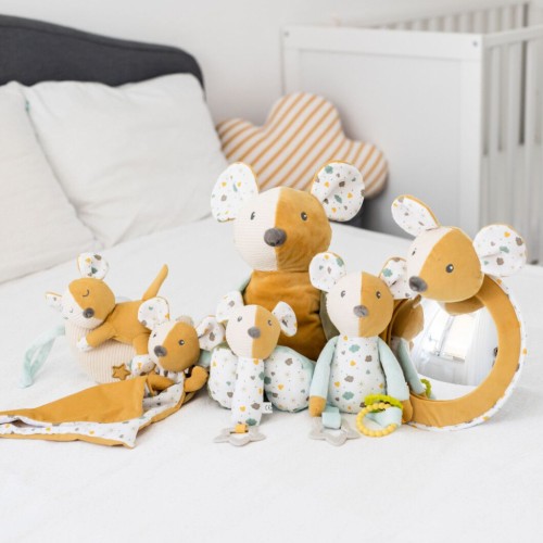 Нова колекція MOUSE - це серія унікальних плюшевих іграшок, які гарантують немовлятам відчуття захищеності та зацікавлять з перших моментів життя.  Іграшки виготовлено з м’якого, приємного матеріалу, а їх пастельні кольори обов’язково сподобаються як хлопцям, так і дівчаткам. Колекція MOUSE складається з шести друзів-мишок, які не лише приділять час малюкам, але й стануть прекрасною прикрасою дитячої кімнати.