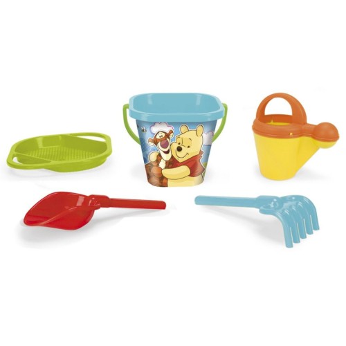 Набір для піску 5 ел. -  Вінні Пух Disney зробить сезон літніх ігор яскравим і незабутнім. Це набір з ексклюзивною ліцензійної серії Disney від Wader. На його елементах (відерці і формочках для піску) зображені головні герої мультфільмів Disney. Картинки нанесені за сучасною технологією IML (In-Mould Labelling), яка дозволяє зробити їх виключно стійкими.