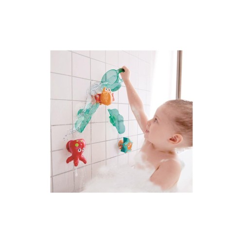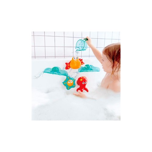 Зберіть веселий атракціон для морських мешканців і влаштуйте їм справжні веселощі! За допомогою цього набору дитина зможе зібрати справжній каскадний водоспад. Вода, що ллється, змусить звірят танцювати і кружляти! У наборі: глечик, 2 хвилясті гірки на присосках, морська зірка, танцюючий краб і восьминіг.