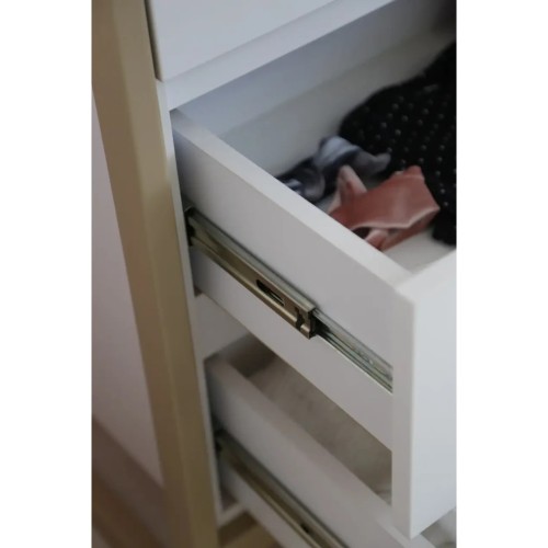 • Три місткі шухляди на телескопічних напрямних. Верхній ящик – глибина 10 см, розділений на дві частини. Другий та третій – глибина 14 см.