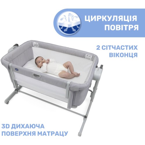 • Сітчасті вставки на боковинах та 3D-сітчастий чохол на матрацик забезпечують оптимальну циркуляцію повітря в ліжечку.