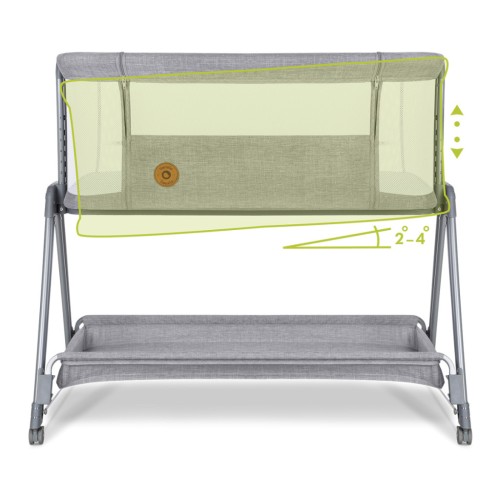 Ліжечко Luna надійно кріпиться до ліжка батьків за допомогою лямок-застібок, а занижений борт полегшить доступ до малюка. Її також можна використовувати як окреме ліжечко, що окремо стоїть. Зручний, досить жорсткий матрац забезпечить правильну підтримку всього тіла, гарантуючи нічний сон. Він буде ідеальним з перших днів, поки дитина не почне самостійно сидіти або досягне ваги 9 кг. Чохол ліжечка легко знімається для прання. Luna оснащена сітчастими стінками, що забезпечують оптимальну циркуляцію повітря. Висоту матраца можна вільно регулювати на 6 рівнях. Колеса з блокуванням. Місткий кошик.