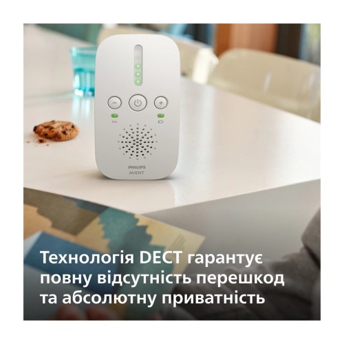 • Хвилювання за дитину є абсолютно нормальним явищем, особливо коли вона ще зовсім маленька і потребує постійної уваги. Проте батькам необхідно не лише піклуватися про малюка, а й займатися нагальними побутовими справами, що особливо зручно робити в моменти денного сну. І саме тоді на допомогу приходить радіоняня Philips Avent, що без проблем сповістить про пробудження дитини. Вона має технологію DECT, яка кодує дані та зменшує вірогідність перешкод чи перетину з будь-якими іншими передавальними системами. Бездротова система забезпечує високу якість звуку навіть тоді, коли між дитячою та батьківською частиною відстань у 50 м в приміщенні. До того ж можна не боятися випадково вийти з зони дії чи спонтанного розрядження вашої частини пристрою – спеціальні індикатори на корпусі повідомлять про це. Батьківський блок може працювати від електромережі та батарей, у той час як дитячий стаціонарно знаходиться біля дитини, підключений до електромережі. Це додає мобільності батькам та зручності в експлуатації. А заспокійливе м'яке освітлення дитячого блоку сприяє комфортному засинанню дитини без проблем та хвилювання.