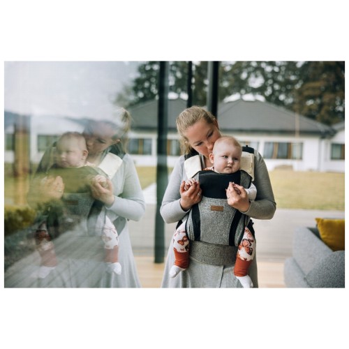 Підтримка і положення ніжок утримують хребет малюка в правильному положенні. Для більш зручного носіння та відпочинку на колінах підголівник запобігає хитанню голови. Забезпечує правильний спосіб носіння, оскільки ніжки дитини залишаються в ергономічному положенні M .