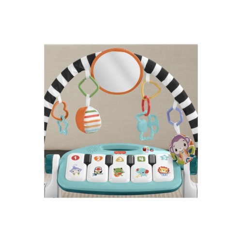 Це класичний дитячий ігровий центр зі знімним іграшковим піаніно на 5 клавіш. Яскраві висококонтрастні візерунки, 85+ звуків, фраз та пісень англійською мовою, 30+ хвилин веселих мелодій та 10 підвісних іграшок спонукатимуть дитину до гри.
