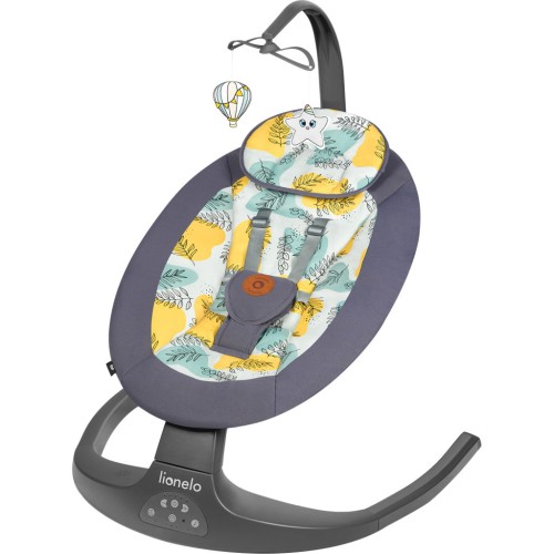 Гойдалка Lionelo Ralf має варіант гойдання з п'ятьма різними рівнями швидкості. Рух хитання бічне: вправо-ліворуч. Вбудований таймер дозволяє вибрати одне із трьох значень часу гойдання - 8, 15 або 30 хвилин. У цей час вбудована музична скринька з 12 спокійними мелодіями та з'ємна пов'язка на голову з 2 іграшками успішно розважать вашого малюка.