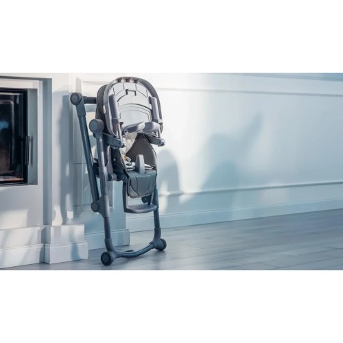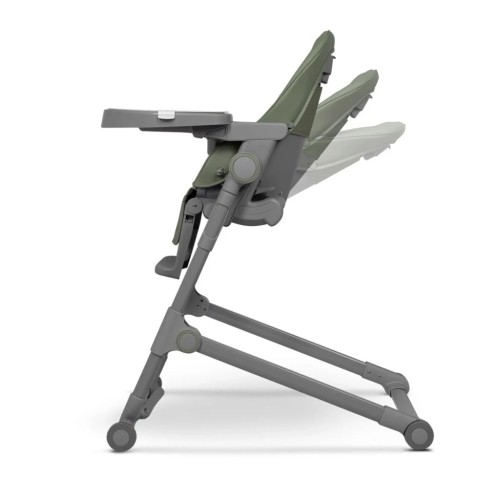 • Шезлонг з ергономічною спинкою, в якому малюк відпочиватиме перші місяці життя, швидко трансформується у зручний стільчик для годування з тацею. Легко рухається завдяки практичним колесам.