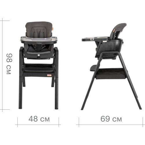 Розміри у зібраному вигляді (ДхШхВ), у модифікації дитячого стільця: 48x69x98 см
