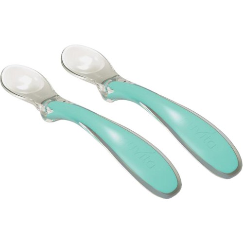 Дві ложечки лаймового кольору створені італійським брендом Nuvita для годування малюків. Ложки вироблені із силікону, матеріал безпечний для дитячих ясен та перших зубів.