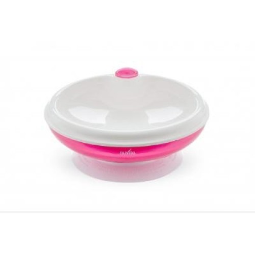 Тарілочка з підігрівом рожевого кольору для немовлят, розроблена італійським брендом Nuvita. Вона оснащена невеличким отвором, у який заливається гаряча вода для утримання дитячого харчування в теплі. Тарілочка із нековзним дном буде впевнено стояти на поверхні стола. Вироблена із міцного і безпечного пластику, який не містить у складі бісфенол-А та фталати. Для немовлят з 6 місяців.