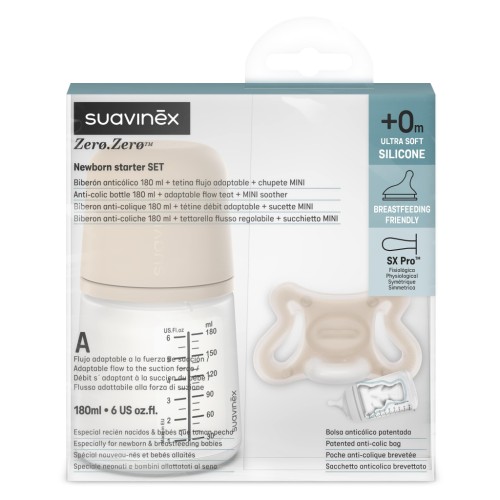 Набір для годування новонароджених Suavinex Zero. Zero Beige (пляшка 180 мл + пустушка) (308426)