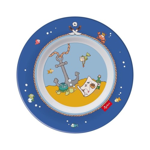 Дитяча пласка тарілка «Sammy Samoa» від німецького бренду sigikid. Тарілка (Ø=21,5 см) із насиченим блакитним малюнком на морську тематику. Тарілочка вироблена із якісного практичного пластику. Її можна мити у посудомийній машині, матеріал відрізняється зносостійкістю і не ламається. Яскраві малюнки приваблюватимуть дітлахів.