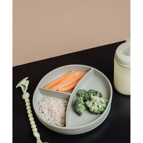 Силіконова тарілка Suavinex з секціями з колекції Color Essence – практичний аксесуар для перших прикормів та навчання самостійного харчування. Оснащена потужною присоскою для надійної фіксації на столі. Три секції дозволяють зручно розділяти страви.