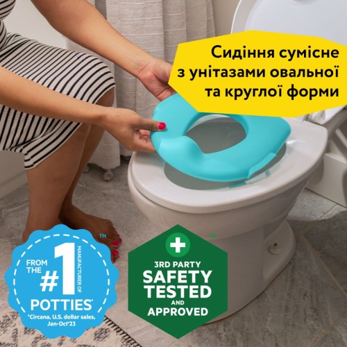 • коли малюк підросте, сидіння можна зняти та встановити на дорослий унітаз (овальної чи круглої форми) для плавного переходу до "дорослого" туалету;
