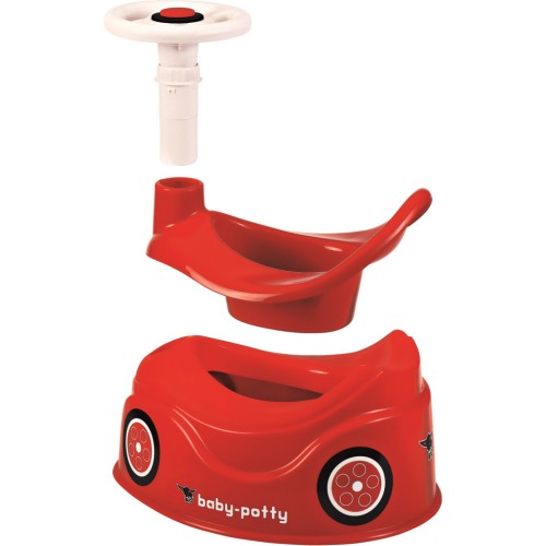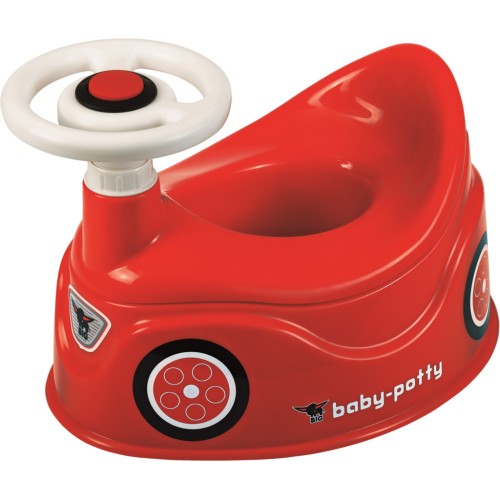 Навчити дитину ходити на горщик, це досить вагомий крок у її житті. З новим горщиком у формі машинки від BIG неодмінно цей процес буде легким і веселим. Горщик виготовлений із високоякісного та міцного пластику, який легко миється. Він максимальне наближення до моделі автомобіля Bobby car. Яскравий червоний горщик має кермо, яке крутиться й імітовані колеса з обох боків. Комфортне сидіння дитині забезпечить висока спинка. Коли ціль досягнута, дорослий може швидко очистити вкладку. Тільки потрібно зняти кермо й отримати вкладку, взявши за ручку, яка розташована за спинкою. Робити кроки до дорослого життя можна з такими улюбленими речами, як машинка.