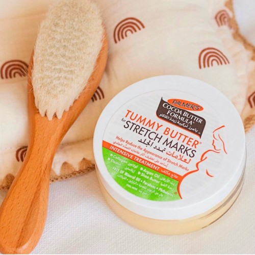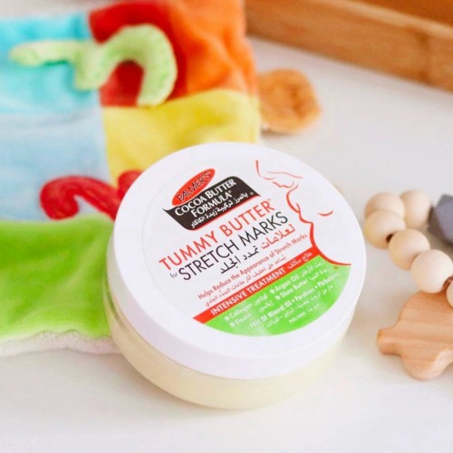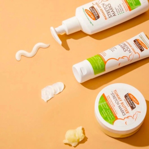 Масло какао від розтяжок Palmer's для шкіри живота. Підвищує рівень колагену, покращує еластичність шкіри та ефективно усуває розтяжки під час і після вагітності або коливань ваги.