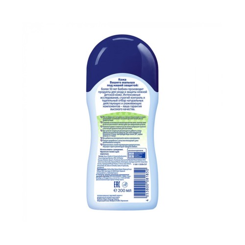 М'який зволожуючий засіб для купання делікатно очищає чутливу шкіру малюка. Спеціальна формула засобу на рослинній основі забезпечує ніжну турботу про дитячу шкіру, зволожуючи і живлячи її. Містить різні зволожуючі компоненти для оптимального догляду за ніжною дитячою шкірою, а також комплекс «Бюбхен – Активний захист шкіри», що перешкоджає надмірній втраті вологи через шкіру. Зволожує шкіру, завдяки натуральним активним компонентам: ромашки, протеїнів пшениці, пантенолу і геліотропіну. Підходить для щоденного застосування. Не містить синтетичних барвників та ароматизаторів.