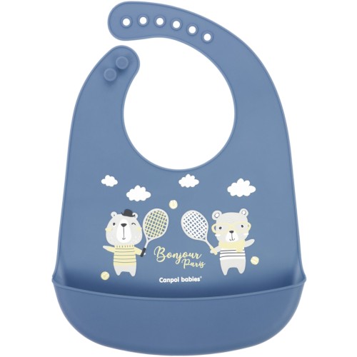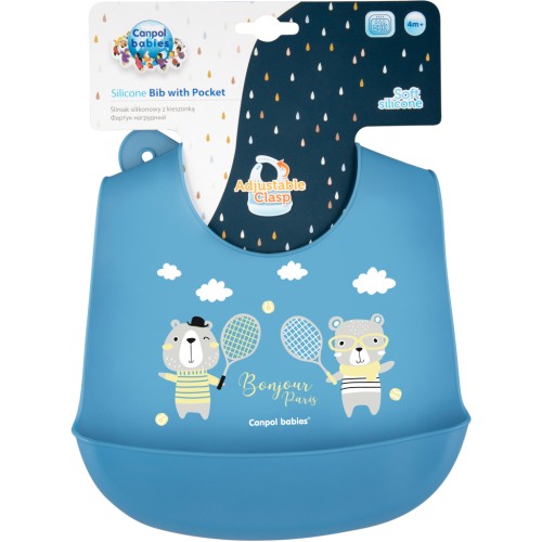 Нагрудничок Canpol babies Bonjour Paris силіконовий з кишенькою синій (74/027_blu)