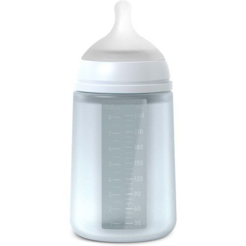 Пляшечка для годування Suavinex Colour Essence, 240 мл, силіконова, 240 мл, фізіологічна соска повільний потік, , світло-блакитн (308653)