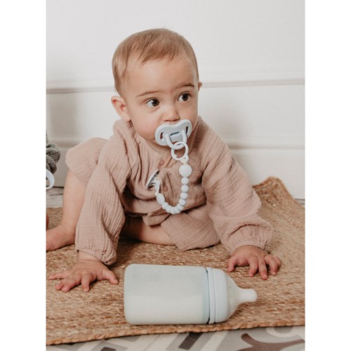 Пляшечка Suavinex призначена для малюків від 3 місяців. Вона зручна для ручок дитини, сприяє розвитку тактильного сприйняття, підходить для води, молока й соків, має антикольковий клапан. Мініатюрна симетрична соска забезпечує природне розташування язика, її відцентрована шийка полегшує годування. Пляшечка сумісна з усіма сосками SX Pro та придатна для миття в посудомийній машині.