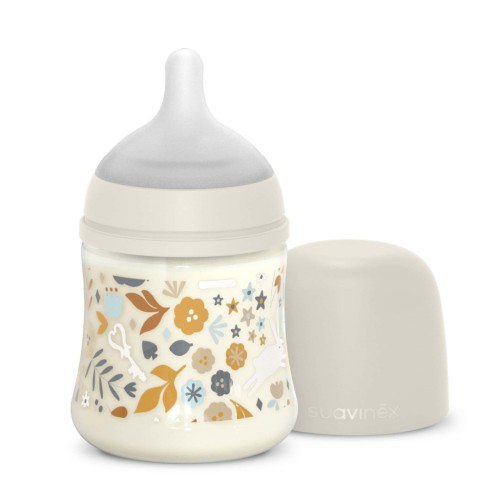 Пляшечка Suavinex розроблена з урахуванням особливостей розвитку ротової порожнини дитини. Дозволяє утримувати язик у такому ж природному положенні, як під час годування з грудей матері.