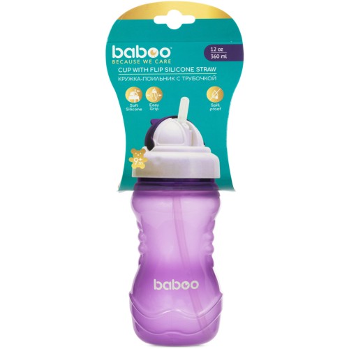 Поїльник-непроливайка Baboo із силіконовою соломинкою, 360 мл, 9 + (фіолетова) (8-128)