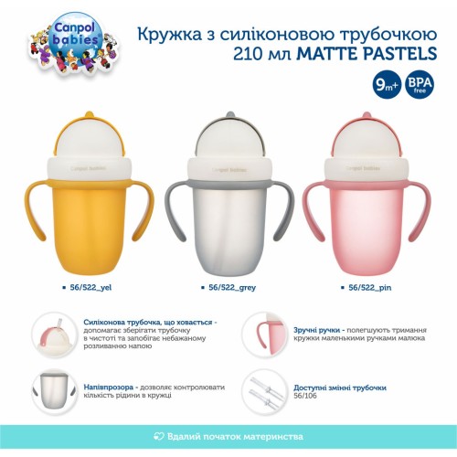 Поїльник-непроливайка Canpol babies Matte Pastels із силіконовою трубочкою 210 мл Рожевий (56/522_pin)