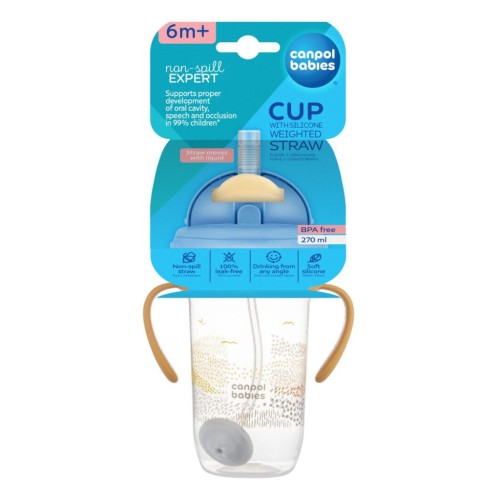 Поїльник-непроливайка Canpol babies MOUNTAINS з трубочкою і обтяжувачем, 270 мл, бежева (56/620_bei)
