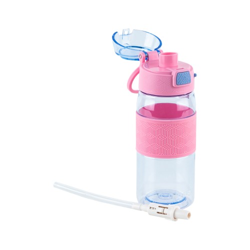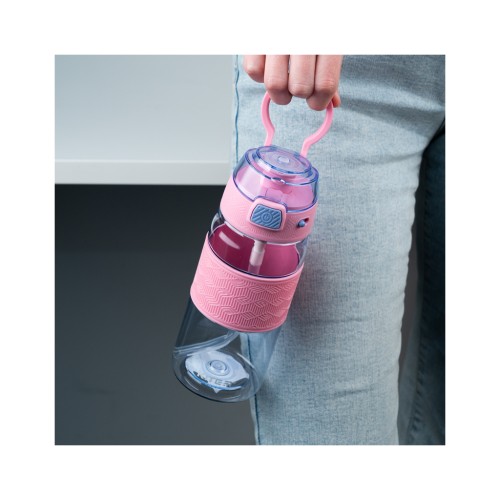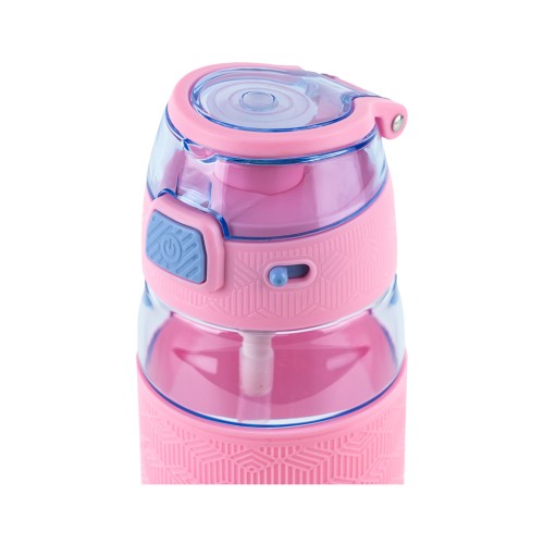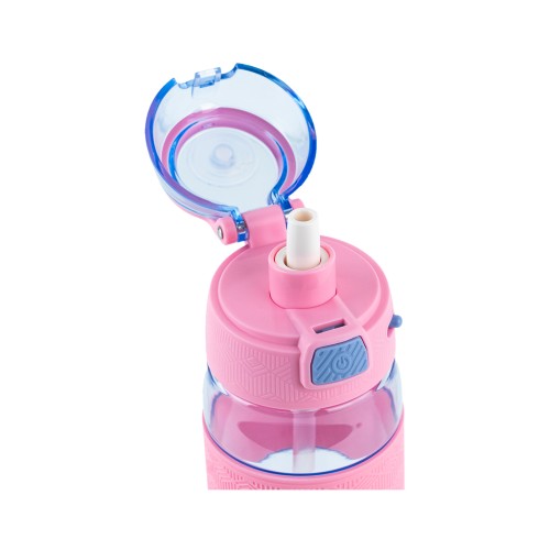 Має силіконову трубочку, завдяки якій зручно пити навіть на ходу. Кришечка надійно закривається, не даючи воді проливатися, а також захищає мундштук від забруднень. Фіксатор блокує кришечку, захищаючи від мимовільного відкриття. Область тримання з рельєфним прогумованим покриттям – приємна на дотик, не ковзає в руці.