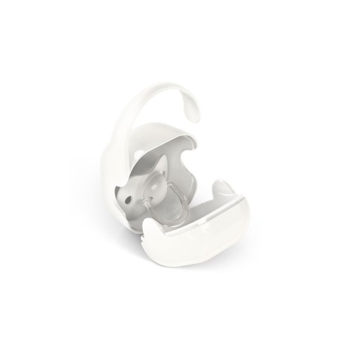 Контейнер виготовлений з якісних, безпечних матеріалів, що не містять шкідливих речовин і підходять для щоденного використання з народження. Завдяки компактним розмірам у ньому зручно зберігати одну або дві пустушки, а продумана форма дозволяє легко відкривати та закривати його однією рукою.