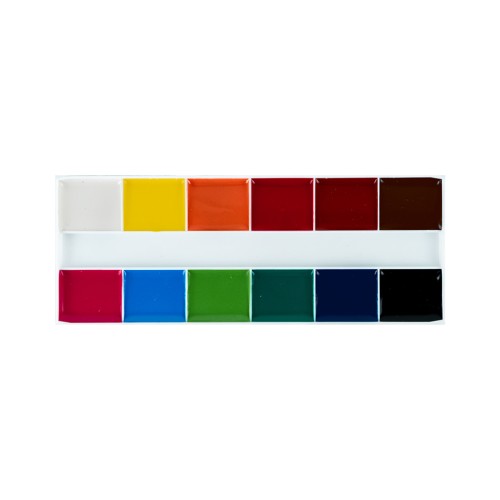Яскрава палітра складається з 12-ти насичених кольорів та надихає створювати шедеври. Фарби зберігаються в зручній та привабливій картонній упаковці.