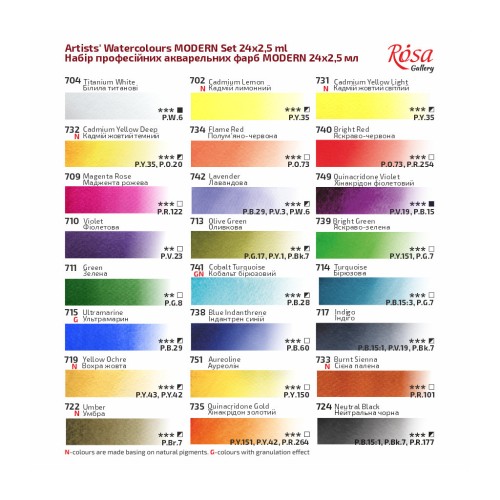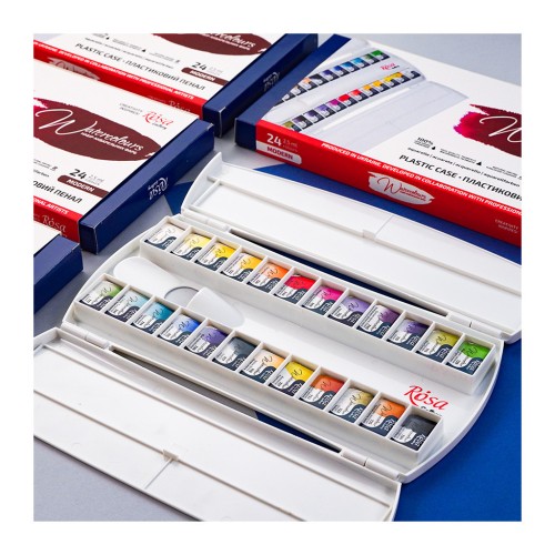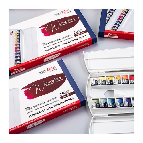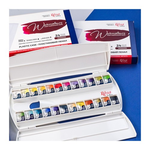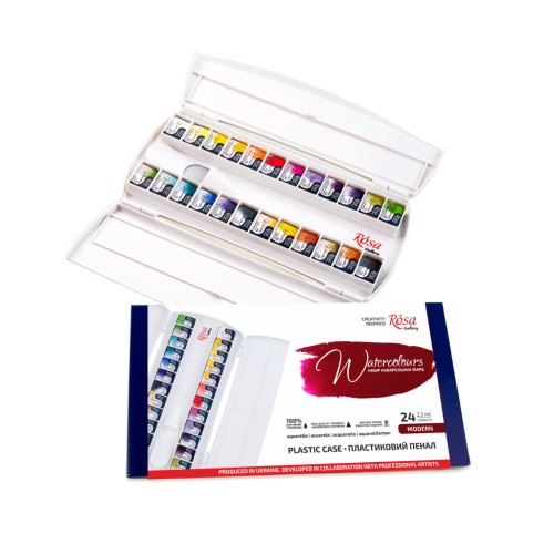 Акварельні фарби Rosa Gallery Modern 24 кольри по 2,5 мл кювет, пенал (4823098541110)