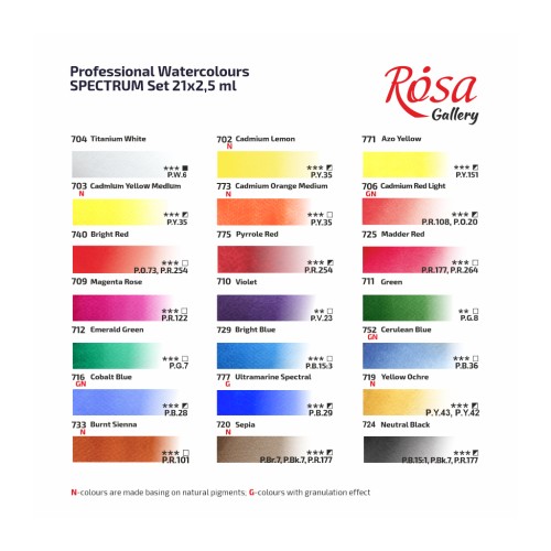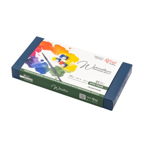 Набір професійних художніх акварельних фарб SPECTRUM поєднує у собі традиційні кольори для техніки акварель. більшість кольорів гами - однопігментні, що дає можливість утворювати чисті віддінки при зммішуванні.
