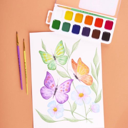 Малювання акварельними фарбами – це не лише захопливе заняття, а й творчий процес, що розвиває вміння дитини виражати свої почуття. Робота з пензлем і фарбами покращує координацію рухів і готує руку до письма, знайомить дітей з палітрою кольорів, вчить їх змішувати та отримувати різні відтінки. Малювання вимагає від дитини зосередженості та уваги, що сприяє розвитку посидючості, концентрації, а також допомагає дітям розвивати фантазію та уяву.