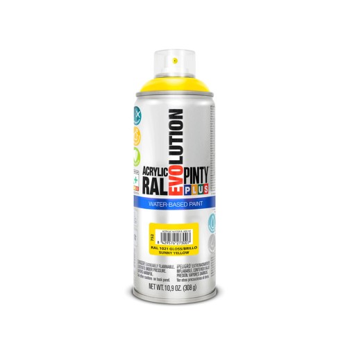 Фарба-аерозоль Pintyplus на водній основі Evolution Ral 1021, Жовтий, глянцевий, 400 мл (8429576273007)