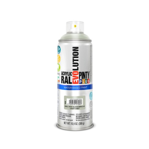 Фарба-аерозоль Pintyplus на водній основі Evolution Ral 7035, Сірий світлий, глянцевий, 400 мл (8429576275803)