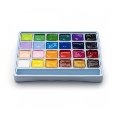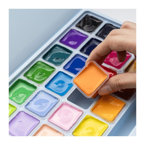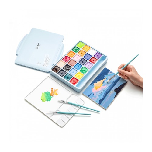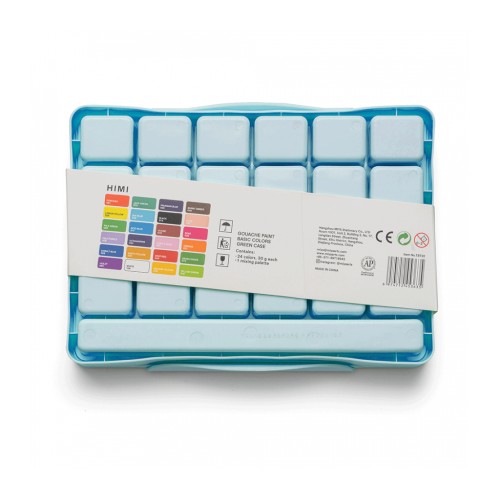 Гуашеві фарби HIMI Jelly Cup 24 кольори по 30 мл, блакитний пластик.пенал (6974712453628)