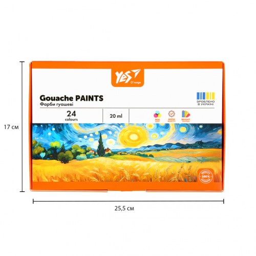 Гуашеві фарби Yes Orange Line 24 кольорів по 20 мл (230434)